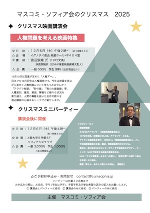 マスコミ・ソフィア会の恒例となったクリスマス講演会とパーティー。